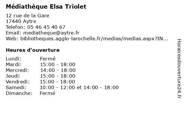 Termes de recherche pour Médiathèque Elsa Triolet:horaires, hiver, livres, elsa, cd, dvd, mediatheque, jeux videos, revues, triolet |
