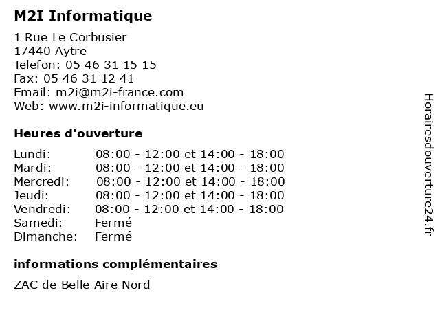1 AP Informatique (Distance: 2,98 km) 40 Avenue Joliot-Curie,, 17180 Perigny accessoires, ap, câble, dépannage, informatique 2 M2I Formation (Distance: 3,47 km) - rue Augustin Fresnel, 17180 Perigny assistance, conseils, digital, diplômes, formation, m2i 3 A2MI Informatique (Distance: 5,05 km) 10-14 rue Jean Perrin, 17000 La Rochelle a2mi, informatique, logiciel, ordinateur, réparation 4 Arobaz Informatique SARL (Distance: 5,20 km) 1 Rue Ampère, 17139 Dompierre-sur-Mer arobaz, informatique, sarl 5 Atlantic Informatique 17 (Distance: 5,34 km) 1 Rue de la Trinquette, 17000 La Rochelle 17, atlantic, informatique 6 17 informatique (Distance: 5,43 km) 11 Rue Léonce Vieljeux, 17000 La Rochelle 17, computer, informaticien, informatique, ordinateur  |