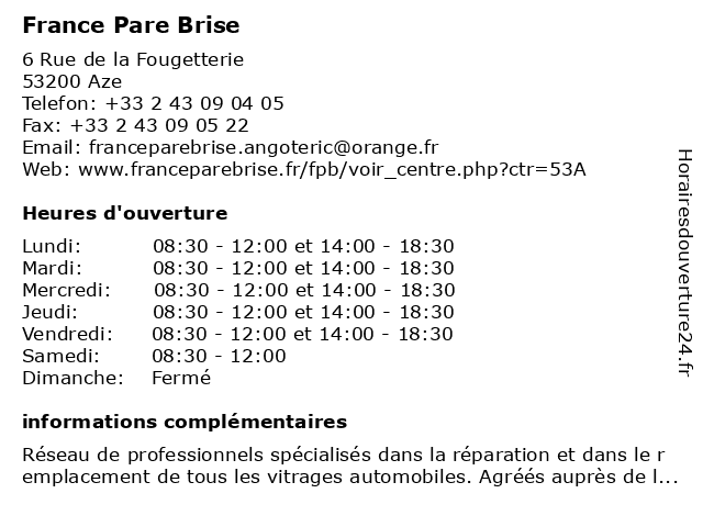 1 Mondial Pare-Brise - Station Service Elan (Distance: 0,80 km) 15 avenue Foch, 53200 Chateau Gontier brise, centers, elan, machinery, mondial, optical headlight wipers, pare, rear window, repair, service, services, side, station, technical, vehicle, windows, windshield 2 Rapid Pare-Brise (Distance: 1,95 km) 21 Avenue de Saint-Fort, 53200 Château-Gontier automobile, brise, pare, pare-brise, rapid, remplacement, réparation, vitrage, voiture 3 VISION PARE BRISE (Distance: 19,39 km) 3 b Rue Jean Monnet, 49500 Segré en Anjou Bleu brise, pare, vision 4 Kiloutou Château-Gontier (Distance: 0,83 km) 20 Avenue René Cassin, 53200 Azé abri de chantier, aspirateur de chantier, base vie de chantier, brise-béton, broyeur de branches et de végétaux, brumisateur de chantier, bungalow de chantier, bétonnière, carotteuse, château, compresseur d'air, débroussailleuse, décolleuse de papier-peint, découpeuse, déshumidificateur d'air, foreuse, gontier, kiloutou, location matériel, marteau-piqueur, matériel btp, matériel chantier, matériel tp, matériel travaux publics, module de chantier, nettoyeur à haute pression, outillage, outils, perforateur-burineur, pilonneuse, pistolet à peinture, plaque vibrante, ponceuse à parquet, remorque, sableuse, shampouineuse, taille-haie, tondeuse à gazon, tronçonneuse à matériaux, échafaudage 5 France Services (Distance: 1,49 km) 23 Place de la République, 53200 Château-Gontier-sur-Mayenne associations, france, maison, services 6 Espace conseil France Rénov (Distance: 1,49 km) 23 Place de la République, 53200 Château-Gontier-sur-Mayenne accueil, conseil, espace, france, maison, rénov |