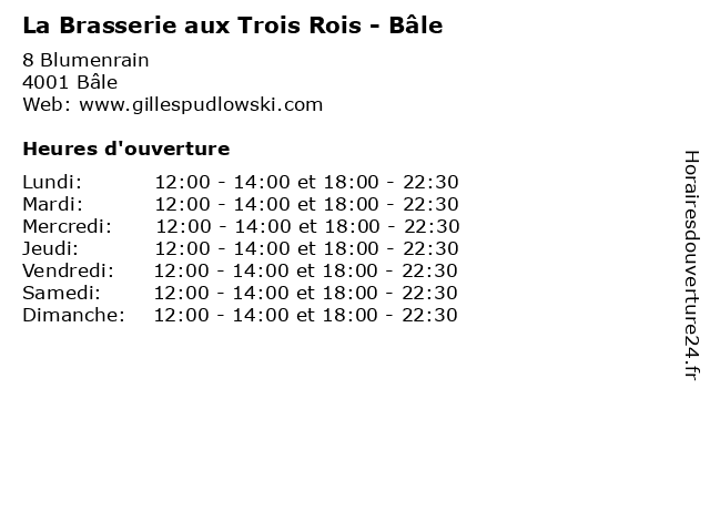| Mercredi | 12:00-14:00 et 18:00-22:30 |