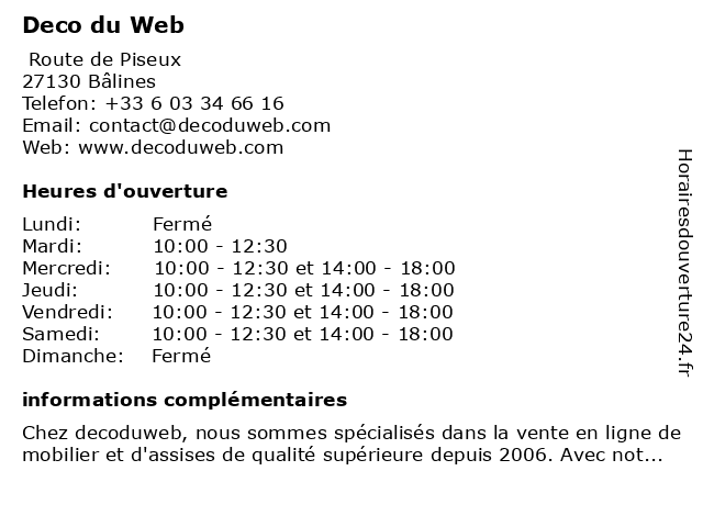 | Mercredi | 10:00-12:30 et 14:00-18:00 |