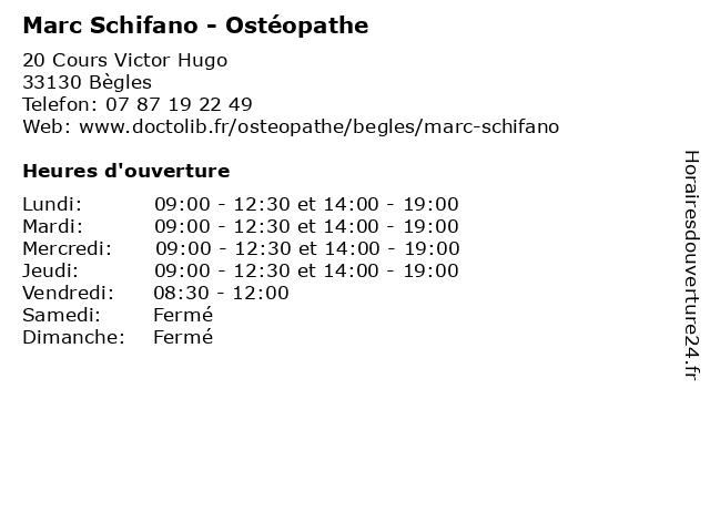 | Lundi | 09:00-12:30 et 14:00-19:00 |