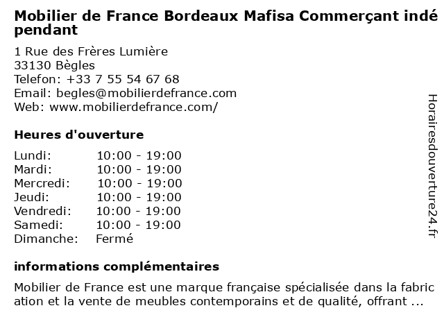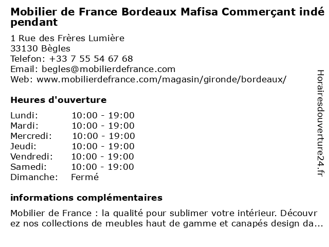 Termes de recherche pour Mobilier de France Bordeaux Mafisa Commerçant indépendant:de, bordeaux, france, mobilier, indépendant, commercant, mafisa |