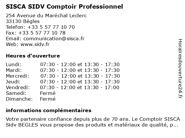 | Lundi | 07:30-12:00 et 13:30-17:30 |