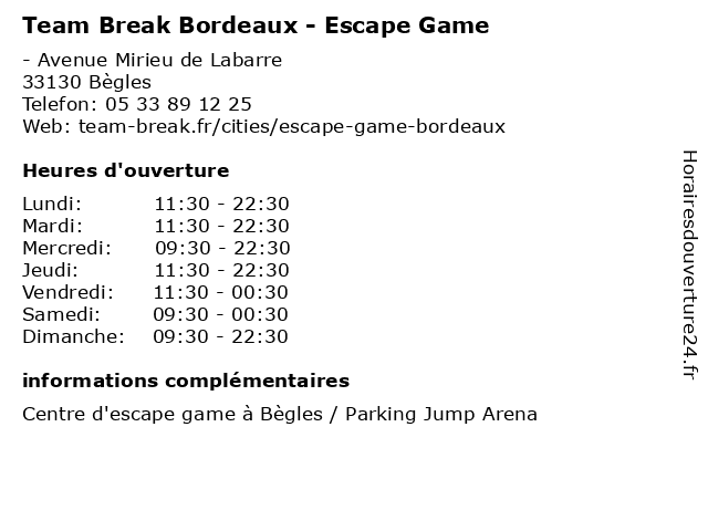 | Dimanche | 09:30-22:30 |