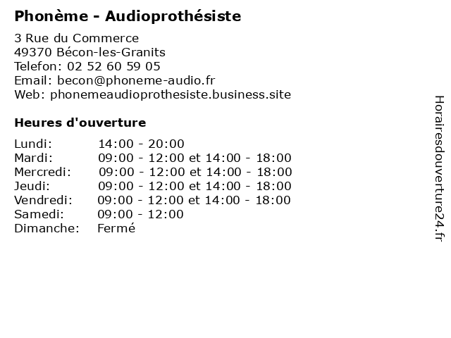 | Mardi | 09:00-12:00 et 14:00-18:00 |
