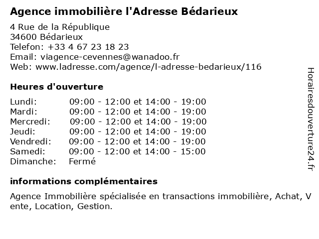 Termes de recherche pour Agence immobilière l'Adresse Bédarieux:bedarieux, agence, immobiliere, l'adresse |