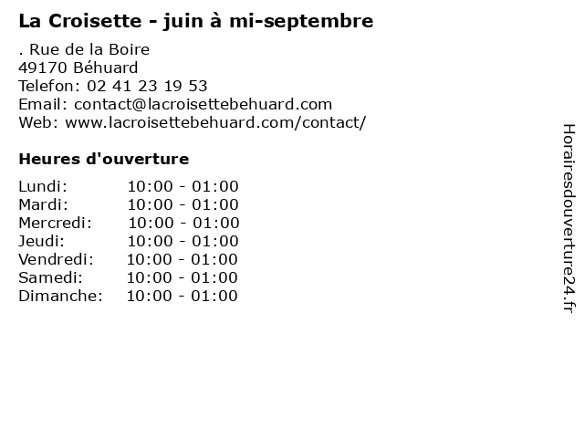| Samedi | 10:00-01:00 |