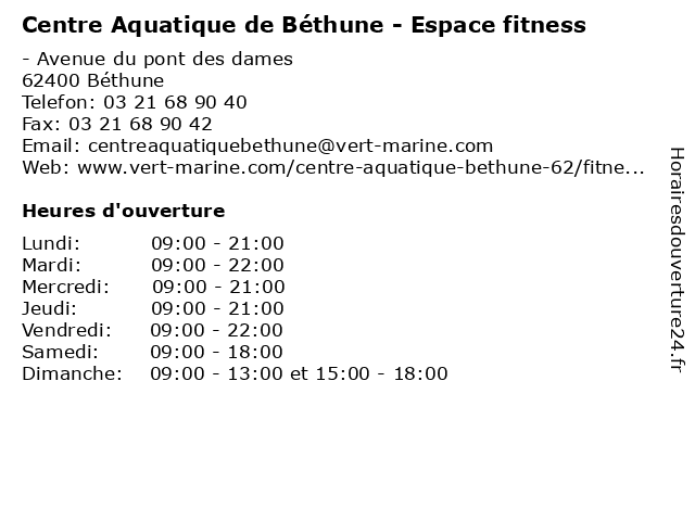 1 Centre Aquatique de Béthune - Piscine (Périodes scolaires) (Distance: 0,00 km) - Avenue du pont des dames, 62400 Béthune aqua, aquatique, béthune, centre, de, piscine, périodes, scolaires 2 Centre Aquatique de Béthune - Piscine (Petites vacances) (Distance: 0,00 km) - Avenue du pont des dames, 62400 Béthune aqua, aquatique, béthune, centre, de, petites, piscine, vacances 3 Centre Aquatique de Béthune - SPA (Distance: 0,00 km) - Avenue du pont des dames, 62400 Béthune aqua, aquatique, béthune, centre, de, piscine, spa 4 Centre Aquatique de Béthune - Piscine (vacances d'été) (Distance: 0,51 km) - Avenue du pont des dames, 62400 Béthune aqua, aquatique, béthune, centre, d'été, de, grandes, piscine, vacances 5 Nauticaa - Espace Aquatique - Périodes scolaires (Distance: 16,58 km) - Rue Hoche, 62800 Liévin aqua, aquatique, espace, nauticaa, piscine, période, périodes, scolaire, scolaires 6 Nauticaa - Espace Aquatique - Grandes Vacances (Distance: 16,58 km) - Rue Hoche, 62800 Liévin aqua, aquatique, espace, grandes, nauticaa, piscine, vacances |