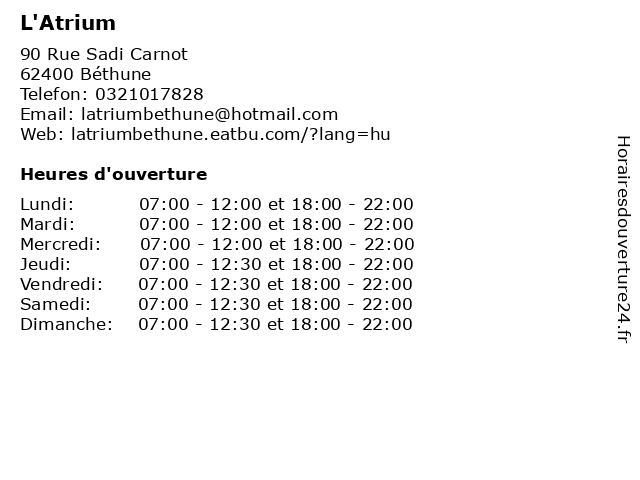 | Samedi | 07:00-12:30 et 18:00-22:00 |