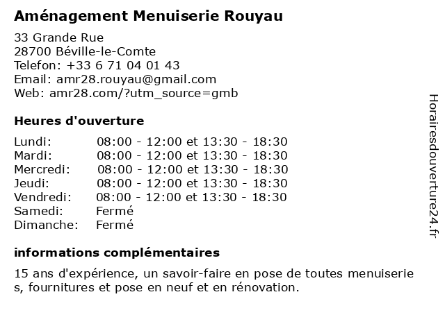 | Mardi | 08:00-12:00 et 13:30-18:30 |