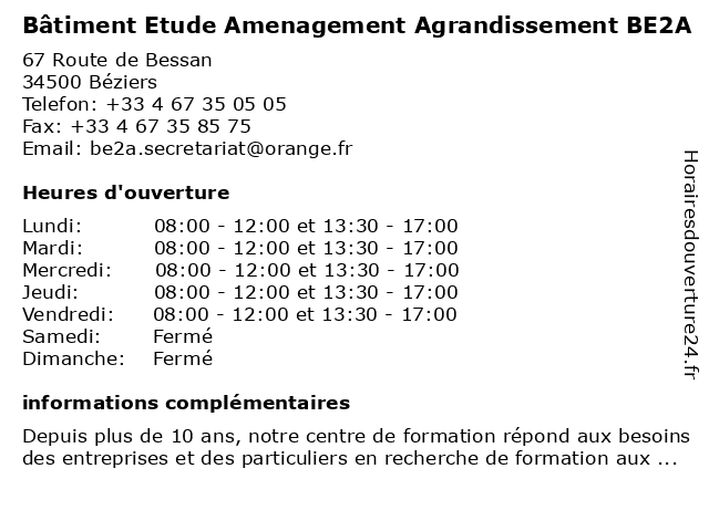 | Lundi | 08:00-12:00 et 13:30-17:00 |