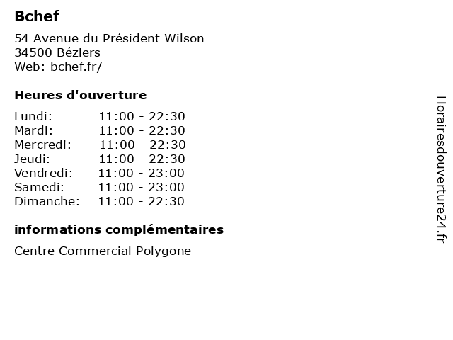 | Mercredi | 11:00-22:30 |