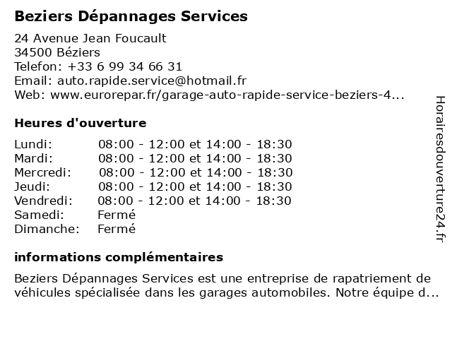 | Lundi | 08:00-12:00 et 14:00-18:30 |