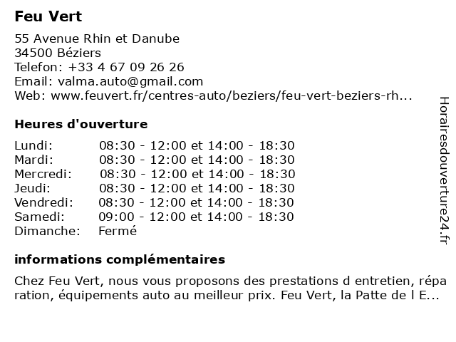 2 Feu Vert (Distance: 3,00 km) - Zone Economique de Montimaran, 34500 Béziers automobile, centre auto, dépannage, entretien, feu, garage, pneus, réparation, vert 3 Feu Vert (Distance: 3,00 km) Avenue Paul Loubet, 34500 Béziers amortisseurs, ampoule, autoradio, batterie, chaussettes neige, chaînes neige, coffre de toit, feu, freinage, glacière, pneu, pneu 4 saisons, pneu hiver, remorque, révision, vert, vidange 5 La Pierre a Feu (Distance: 1,77 km) 2 b Avenue Camille Saint Saens, 34500 Beziers feu, pierre, restaurants 6 Votre Point Vert (Distance: 11,25 km) n/a route, 34370 CAZOULS DES BEZIERS animals, clothing, flower market, garden, garden tools, interior, pet, point, vert, votre |
