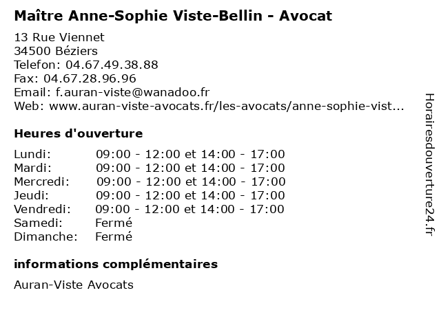 1 Maître Françoise Auran-Viste - Avocate (Distance: 0,00 km) 13 Rue Viennet, 34500 Béziers auran, avocate, avocats, civils, droits, françoise, juridiques, maître, viste 2 Maître Pierre-Emmanuel Viste - Avocat (Distance: 0,00 km) 13 Rue Viennet, 34500 Béziers avocat, avocate, avocats, civils, droits, emmanuel, juridiques, maître, pierre, viste 4 Dr. Sophie Martinot - Dentiste (Distance: 1,39 km) 3 Rue Jean Aicard, 34500 Béziers dentiste, docteur, dr., martinot, medecins, sante, sophie 5 Dr Sophie Hubiche - Pharmacien hospitalier (Distance: 1,67 km) 2 rue Valentin Haüy, 34525 Béziers béziers, cachet, centre, dr, hospitalier, hubiche, medicament, pharmacie, pharmacien, sophie 6 Eber Sophie Naturopathe Iridologue (Distance: 1,90 km) 44 Avenue Jean Moulin, 34500 Béziers eber, iridologue, naturopathe, sophie |