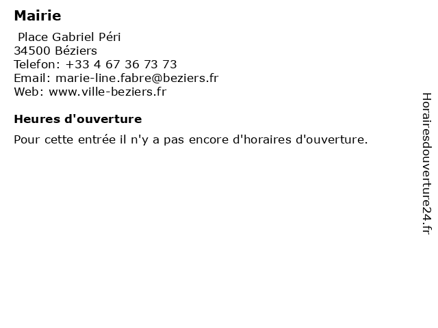 1 Mairie (Distance: 13,88 km) - Place de la Mairie, 11110 Salles-d'Aude administration, mairie, public, service 2 Mairie (Distance: 17,51 km) 25 bis avenue Frédéric-Mistral, 11110 Coursan administration, mairie, public, service 3 4 Mairie (Distance: 19,83 km) 17 rue de la Mairie, 11110 Armissan administration, mairie, public, service 5 Mairie de Lieuran-lès-Béziers (Distance: 0,01 km) n/a Place Gabriel-Péri, 34500 Béziers administration, assoc, associations, béziers, de, des, greffe, lieuran, locale, lès, mairie, mission, services, services publics 6 Point Info Famille (Distance: 0,39 km) 34 Rue Dolet, 34500 Béziers administration, assoc public, famille, info, mairie, point |