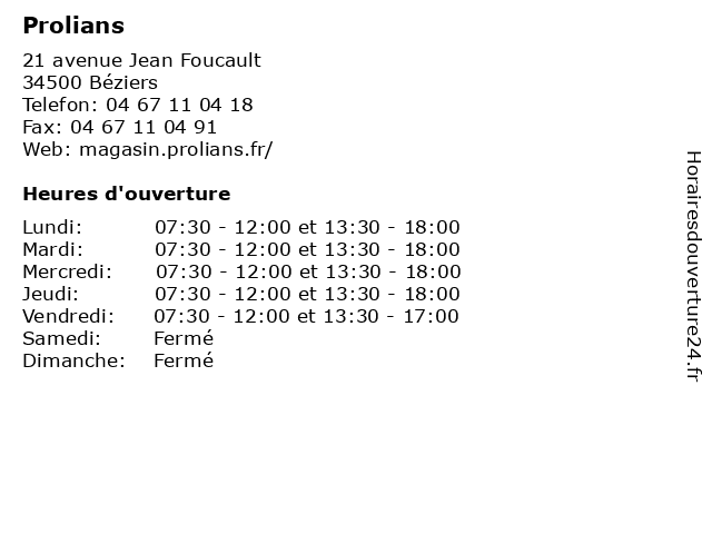 1 Prolians (Distance: 2,36 km) 27 rue de l'industrie, 34500 Béziers magasins, outillage, prolians, quincallerie, services, tube 2 PROLIANS BAURÈS Béziers (Distance: 0,83 km) 24 Rue Martin Luther King, 34500 Béziers baurès, béziers, prolians 3 PARC ACIER PROLIANS BAURÈS Béziers (Distance: 0,83 km) 24 Rue Martin Luther King, 34500 Béziers acier, baurès, béziers, parc, prolians 4 PROLIANS BAURÈS Béziers centre TP (Distance: 0,83 km) 24 Rue Martin Luther King, 34500 Beziers baurès, béziers, centre, prolians, tp 5 PARC ACIER PROLIANS BAURÈS Agde (Distance: 19,37 km) 3 Rue Victor De Mauléon, 34300 Agde acier, agde, baurès, parc, prolians 6 |