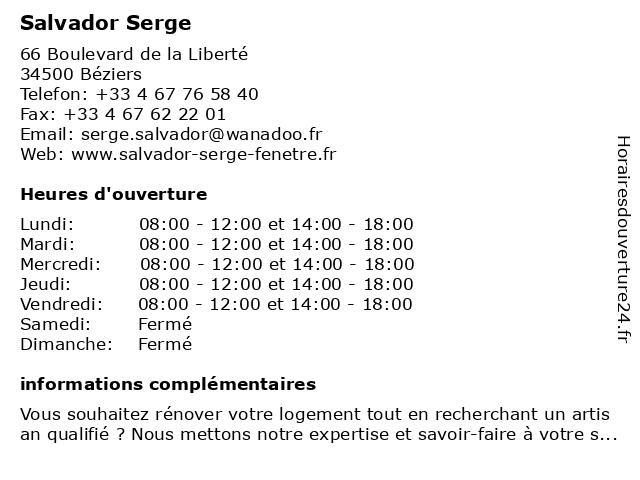 | Lundi | 08:00-12:00 et 14:00-18:00 |