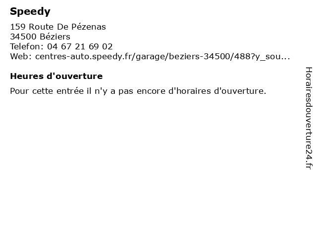 2 Speedy (Distance: 23,30 km) 8 Avenue Des Sergents, 34300 Cap d'Agde accessoires et pièces automobiles, atelier de réparation automobile, magasin de pneus, magasin de vitrages automobiles, réparation automobile, service de climatisation automobile, speedy 3 Speedy (Distance: 23,75 km) 128 Avenue Pierre Azema, 34530 Montagnac accessoires et pièces automobiles, atelier de réparation automobile, magasin de pneus, magasin de vitrages automobiles, réparation automobile, service de climatisation automobile, speedy 4 Speedy (Distance: 30,61 km) Parking Hypermarché Géant Casino, 11100 Narbonne accessoires et pièces automobiles, atelier de réparation automobile, magasin de pneus, magasin de vitrages automobiles, réparation automobile, service de climatisation automobile, speedy 5 Speedy (Distance: 38,00 km) 778 Route De Montpellier, 34200 Sète accessoires et pièces automobiles, atelier de réparation automobile, magasin de pneus, magasin de vitrages automobiles, réparation automobile, service de climatisation automobile, speedy 6 Centre Auto Speedy (Distance: 38,00 km) 778 Route de Montpellier, 34200 Sete auto, centre, entretien, garage, réparation, service, speedy |