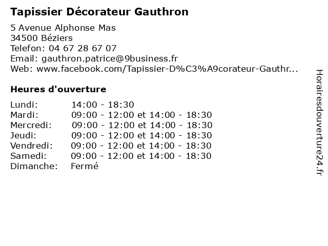| Samedi | 09:00-12:00 et 14:00-18:30 |