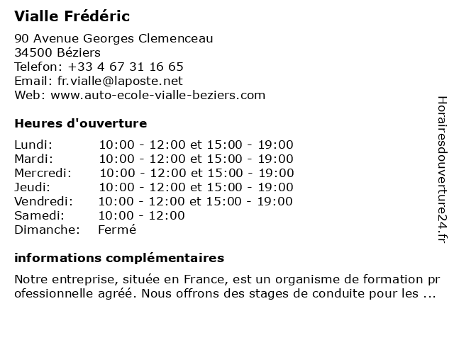 | Vendredi | 10:00-12:00 et 15:00-19:00 |