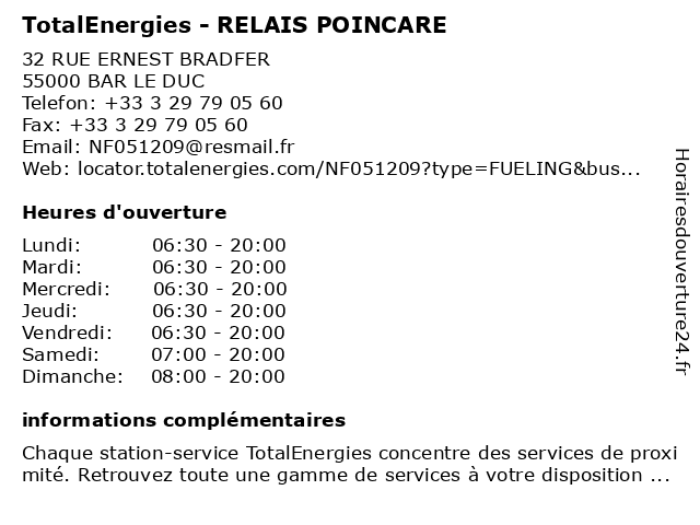 Termes de recherche pour TotalEnergies - RELAIS POINCARE:relais, total, poincaré, gas station, station service, tankstelle, totalenergies |