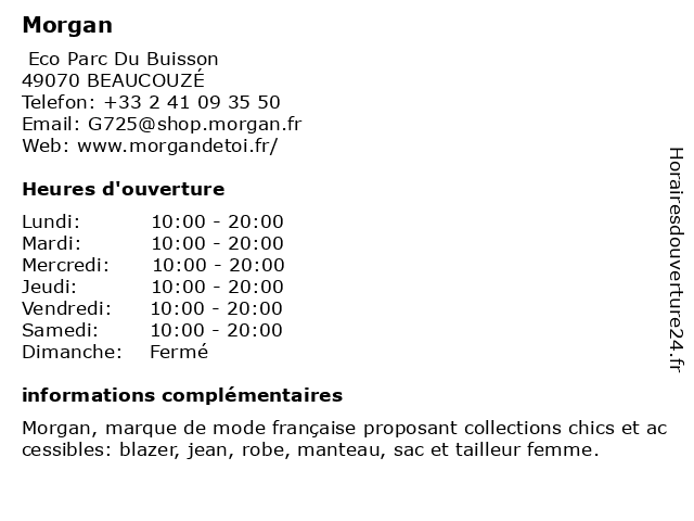 1 Morgan (Distance: 3,28 km) . Rue du Grand Launay, 49000 Angers 100%, beaute, chaussures, enfants, lingerie, mode femmes, mode hommes, morgan, restaurant, sport, yoga 2 Morgan (Distance: 6,04 km) 6 Rue d'Alsace, 49100 Angers blazer femme, cardignan femme, chaussures femme, gilet femme, jean femme, magasin femme, magasin vêtements, manteau femme, mode femme, morgan, pull femme, robe femme, sac femme, t-shirt femme, tailleur femme, top femme, vêtements femmes 3 Morgan (Distance: 7,83 km) 75 Avenue Montaigne, 49000 ANGERS blazer femme, cardignan femme, chaussures femme, gilet femme, jean femme, magasin femme, magasin vêtements, manteau femme, mode femme, morgan, pull femme, robe femme, sac femme, t-shirt femme, tailleur femme, top femme, vêtements femmes 4 Groupe Morgan Services (Distance: 5,31 km) 5 boulevard du Ronceray, 49100 Angers agence, groupe, humaine, intérim, morgan, services, taille 5 Groupe Morgan Services (Distance: 5,99 km) 7 rue Boisnet, 49100 Angers agence, groupe, humaine, intérim, morgan, services, taille 6 Groupe Morgan Services (Distance: 17,85 km) 17 rue Nationale, 49290 Chalonnes sur Loire agence, emplois, groupe, intérim, morgan, offres, services |