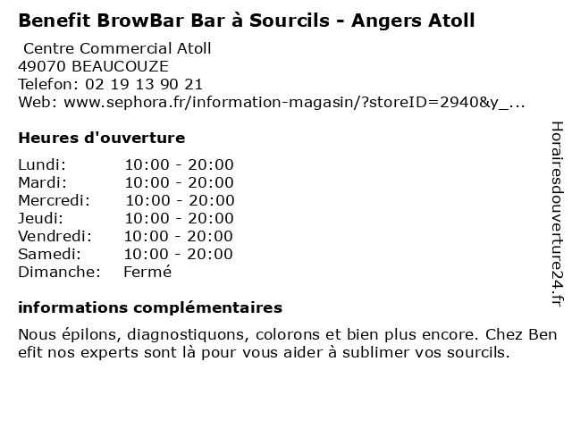 Termes de recherche pour Benefit BrowBar Bar à Sourcils - Angers Atoll:angers, bar, salon de beauté, atoll, benefit, sourcils, magasin de produits cosmétiques, browbar |
