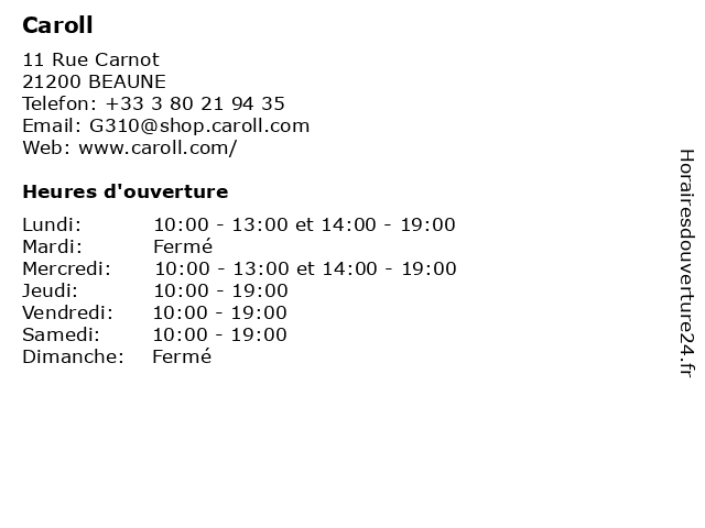 | Lundi | 10:00-13:00 et 14:00-19:00 |