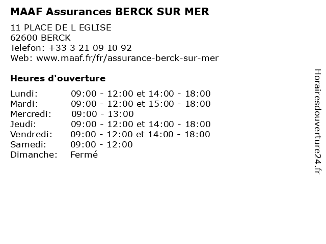 | Lundi | 09:00-12:00 et 14:00-18:00 |