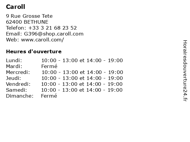 | Lundi | 10:00-13:00 et 14:00-19:00 |