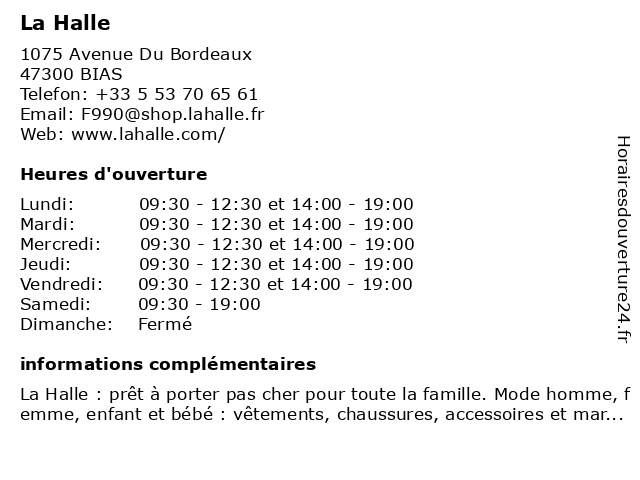 | Mardi | 09:30-12:30 et 14:00-19:00 |