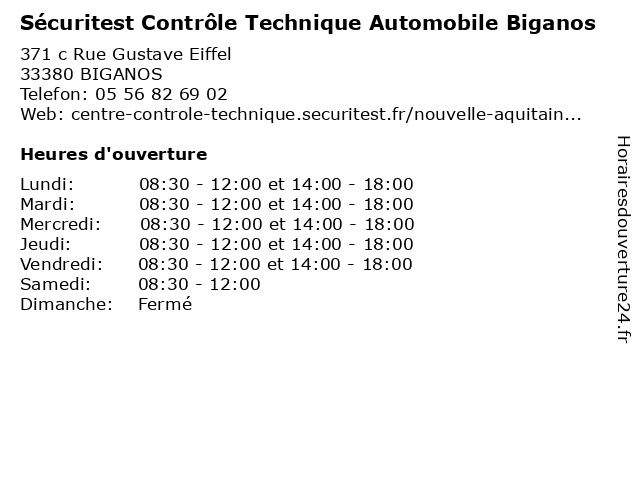 1 Garage AGM Automobile - Autofit (Distance: 0,06 km) 2 bis rue Gustave Eiffel, 33380 Mios agm, autofit, automobile, entretien, garage, réparation, vidange 2 Centre contrôle technique DEKRA (Distance: 0,46 km) 164 Avenue de la Côté d'Argent, 33380 Biganos 4x4, camping car, centre, collection, contrôle, dekra, diesel, electrique, essence, gazole, gpl, suv, technique, utilitaire, voiture 3 Auto Securitas - Contrôle Technique Marcheprime (Distance: 10,21 km) 9 Rue de la Silice, 33380 Marcheprime auto, contrôle, examen, marcheprime, securitas, technique, visite, véhicule 4 AS Auto Sécurité Contrôle technique Salles (Distance: 11,88 km) 4 Route Du Martinet, 33770 SALLES as, auto, contrôle, salles, sécurité, technique 5 AS Auto Sécurité Contrôle technique Le Barp (Distance: 13,41 km) 3 Rue Andre Brun, 33114 LE BARP as, auto, barp, contrôle, le, sécurité, technique 6 Sécuritest Contrôle Technique Automobile La Test De Buch Arcachon Parking Grand Frais (Distance: 14,32 km) 8 Avenue De Binghamton, 33260 LA TESTE DE BUCH arcachon, automobile, buch, contrôle, de, frais, grand, la, parking, sécuritest, technique, test |