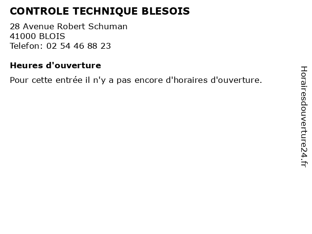 | Appeler CONTROLE TECHNIQUE BLESOIS | |