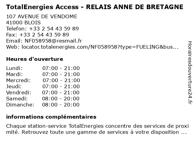 Termes de recherche pour TotalEnergies Access - RELAIS ANNE DE BRETAGNE:relais, de, bretagne, access, anne, total, gas station, station service, tankstelle, totalenergies |