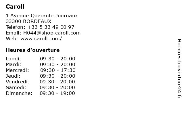 | Lundi | 09:30-20:00 |