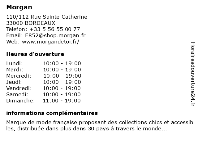 2 Morgan (Distance: 0,34 km) 47 Rue de la Porte Dijeaux, 33000 Bordeaux accessoires, ceintures, femmes, jeans, mode, morgan, pantalons, shorts 3 Morgan (Distance: 4,58 km) 1 Avenue des 40 Journaux, 33300 Bordeaux blazer femme, cardignan femme, chaussures femme, gilet femme, jean femme, magasin femme, magasin vêtements, manteau femme, mode femme, morgan, pull femme, robe femme, sac femme, t-shirt femme, tailleur femme, top femme, vêtements femmes 5 Morgan (Distance: 5,10 km) . Chemin de Tartifume, 33324 Begles accessoires, cafe, deco, enfants, femme, mode, morgan, restaurant, shopping 6 Morgan (Distance: 5,83 km) Rue des Frères Lumière, 33130 Bègles blazer femme, cardignan femme, chaussures femme, gilet femme, jean femme, magasin femme, magasin vêtements, manteau femme, mode femme, morgan, pull femme, robe femme, sac femme, t-shirt femme, tailleur femme, top femme, vêtements femmes |