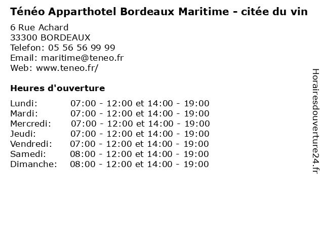| Samedi | 08:00-12:00 et 14:00-19:00 |