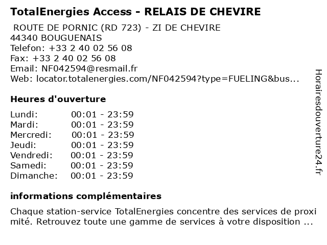 Termes de recherche pour TotalEnergies Access - RELAIS DE CHEVIRE:relais, de, access, total, cheviré, gas station, station service, tankstelle, totalenergies |