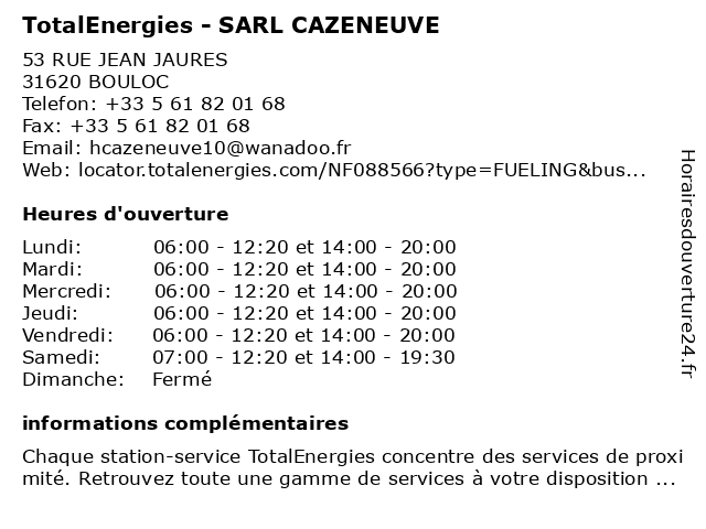 Termes de recherche pour TotalEnergies - SARL CAZENEUVE:sarl, total, cazeneuve, gas station, station service, tankstelle, totalenergies |