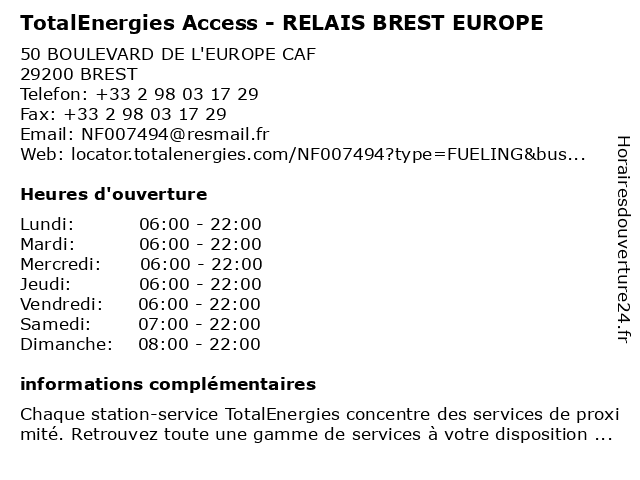 Termes de recherche pour TotalEnergies Access - RELAIS BREST EUROPE:relais, brest, access, total, europe, gas station, station service, tankstelle, totalenergies |