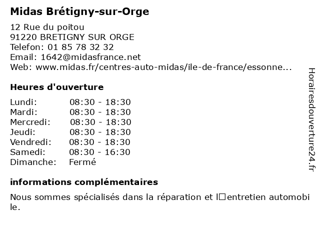 Termes de recherche pour Midas Brétigny-sur-Orge:sur, bretigny, orge, midas, atelier de réparation automobile, service de climatisation automobile, magasin de pièces automobiles |