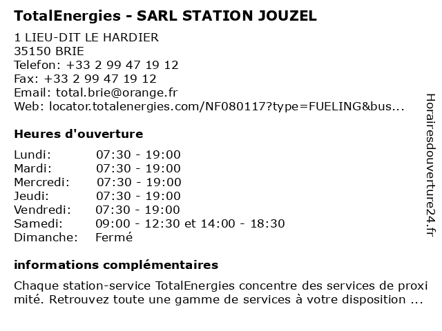 | Samedi | 09:00-12:30 et 14:00-18:30 |