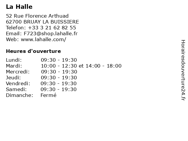 | Mardi | 10:00-12:30 et 14:00-18:00 |