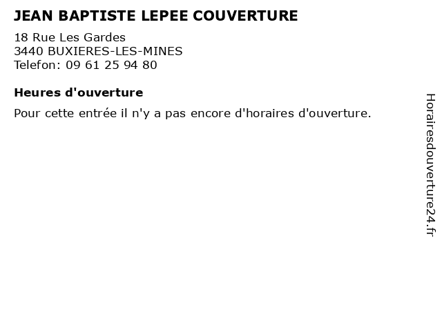 | Appeler JEAN BAPTISTE LEPEE COUVERTURE | |