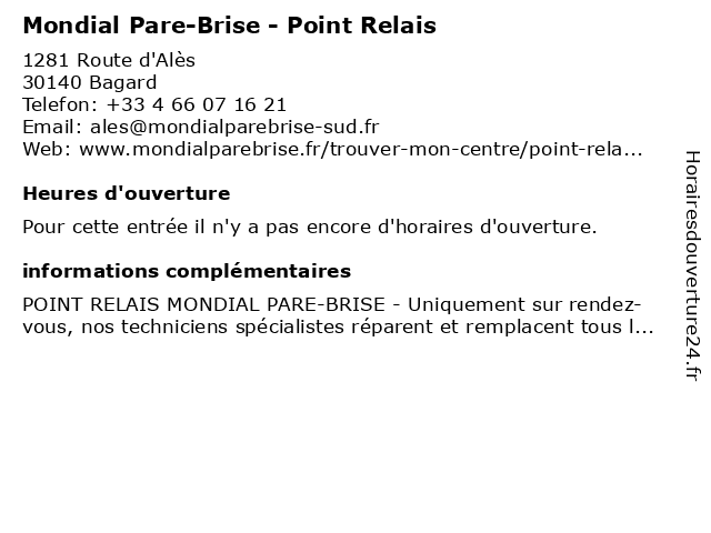 | Appeler Mondial Pare-Brise - Point Relais | |