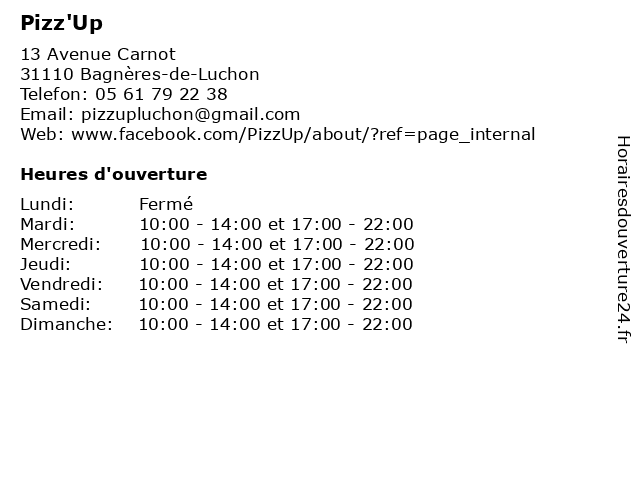 | Mardi | 10:00-14:00 et 17:00-22:00 |