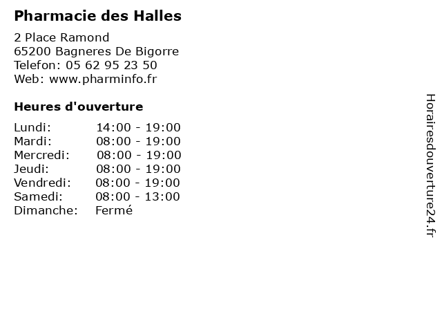 1 Pharmacie Des Halles (Distance: 16,19 km) 3 Place du Champ Commun, 65100 Lourdes des, halles, pharmacie 2 Tabac Presse Des Halles (Distance: 0,04 km) 13 Rue des Thermes, 65200 Bagnères-de-Bigorre des, halles, presse, tabac 3 Auto-École Des Halles (Distance: 0,07 km) 18 rue Justin Daléas, 65200 Bagnères-de-Bigorre auto, auto école, conduite, cours, des, halles, permis, école 4 Les Mijotes Des Halles (Distance: 0,52 km) Halle , 65200 Bagneres De Bigorre allard, corinne, halles, maillard, mijotes, restaurants 5 Halles et Marchés (Distance: 15,77 km) . Boulevard du Lapacca, 65100 Lourdes alimentation, boucherie, et, halles, légumes, marchés, épicerie 6 La Cave des Halles (Distance: 15,77 km) . Boulevard du Lapacca, 65100 Lourdes alcool, cave, caviste, des, halle, halles, la, vins |