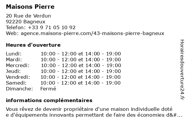 | Mercredi | 10:00-12:00 et 14:00-19:00 |